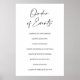 Un póster de orden de eventos diseñado de manera minimalista para mostrar el calendario de tu día de boda a tus invitados.