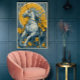 Póster de circo Art Nouveau en azul y amarillo