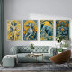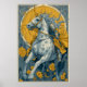 Este póster de circo Art Nouveau en azul y amarillo es uno de un conjunto de 4 (cada uno se vende por separado). Presenta un hermoso caballo de circo en plena actuación.