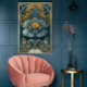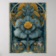 Este póster de circo Art Nouveau en azul y amarillo es uno de un conjunto de 4 (cada uno se vende por separado). Presenta una hermosa flor ornamentada.