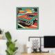Póster de coche clásico retro vintage, decoración de garaje, arte de ia, generado por ia