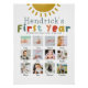 Este lindo poster de collage de fotos de primer cumpleaños es parte de nuestra brillante y colorida colección de cumpleaños "primer viaje alrededor del sol". Presenta un fondo blanco minimalista, y puede ser personalizado con detalles del nacimiento de su hijo, y 12 fotos del primer año de su hijo. ¡El diseño moderno perfecto para celebrar a tus hijos el primer año!