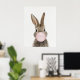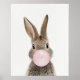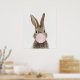 Póster de conejo soplando chicle rosa