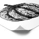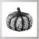 Póster con ilustración de calabaza en blanco y negro con técnica de punteado.