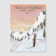 Poster turístico de vacaciones en poster de esquí de los Pirineos franceses (Francia y España).