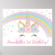 Póster de fondo para fiesta de cumpleaños de unicornio. ¡Genial para decoración y fondo de mesa de postres!