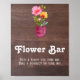 Agrega un encantador toque rústico a tu evento con este cartel de barra de flores rústicas que presenta frascos de mason y un diseño de ramo floral. Este letrero invita a los invitados a crear sus propios ramos, lo que lo convierte en un toque divertido e interactivo para cualquier ducha de novia, ducha de bebé o celebración con tema campestre. Con su cálido estilo rústico y encantadora ilustración de frasco de mason, complementa perfectamente una estación de flores DIY. Muéstralo en tu barra de flores para una configuración hermosa y digna de una foto.