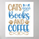 Póster de Gatos, Libros y Café