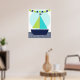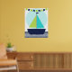 Un diseño de barco de vela náutico para guardería es ideal para la habitación del bebé o de un niño mayor, cuenta con un barco de vela con velas verdes y azul turquesa, un estandarte de bandera verde lima y azul marino, y agua con rayas de chevron.
