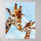 Póster adorable con una ilustración de acuarela de una jirafa mamá y su bebé. Una forma encantadora de decorar la habitación de un niño o guardería con.