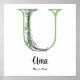 Este póster de monograma de letra U será un acento personalizado perfecto para guarderías, dormitorios y otros espacios.