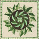 Este poster imprimible presenta un patrón similar al de la corona con hojas verdes. Los colores son verde, crema y marrón. Esta imagen viene de un diseño original de mosaico. De Oregon Tile maker Fay Jones Day