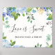 Da la bienvenida a los invitados a tu boda con el Póster de Hortensia Azul Claro El Amor es Dulce, que presenta exuberante vegetación botánica de acuarela y flores blancas, con "bienvenidos a nuestro feliz para siempre", sus nombres y fecha de la boda en una mezcla elegante de tipos de letra modernos y caligráficos.
