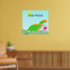 Póster de huevo de dinosaurio bebé rosa de familia de dinosaurios lindos. Felices dinosaurios cartoon diplodocus verdes y naranjas con un huevo de dinosaurio bebé rosa en un paisaje soleado y brillante con sol en el cielo. Este bonito póster de dibujos de dinosaurios es totalmente personalizable, ¡cambia el texto "Hola Mundo" y añade tus textos e imágenes! ¡Un gran regalo de impresión de póster de dibujos de dinosaurios!