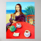 WOW! ¡Esta impresión se verá fabulosa colgando de tu pared! ¡Es sorprendente! Mona sale a tomar el té con sus dos yorkies. Ella y Leo (como en Leonardo da Vinci) han tenido una riña, y le ha escrito una carta de Querido Leo. Pobre Leo. Al menos el té es bueno. ¡Brillante, divertido, colorido, magnífico RED que grita mírame! De mi pintura original ©Lyn Hamer Cook.