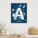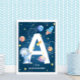 Embarcarse en un viaje cósmico con este póster de la letra 'A' personalizable, que incluye un astronauta, planetas, estrellas y un cohete espacial. Perfecto para habitaciones infantiles y de niños con tema espacial, este diseño vibrante se puede personalizar con un nombre, lo que lo convierte en una pieza de decoración única y especial. Inspira el amor por el universo con esta encantadora y educativa obra de arte.