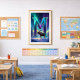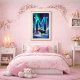 Traiga la majestuosa belleza del invierno a su espacio con este arte mural Aurora Letra M. Una letra M brillante emerge de un bosque nevado, iluminada por cintas fluidas de Luces del Norte en tonos brillantes de turquesa, esmeralda y violeta. Un suave alce se encuentra en primer plano, iluminado suavemente por el resplandor de la aurora, agregando un alce pacífico del bosque a la mágica escena invernal.