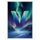 Traiga la impresionante belleza del norte a su espacio con este arte mural Aurora Letra V. Una letra V brillante flota sobre un valle montañoso congelado, iluminado por cintas fluidas de Luces del Norte en ricos tonos de turquesa, esmeralda y violeta suave. Acantilados cubiertos de nieve se elevan a ambos lados de un río helado debajo, reflejando la suave luz de la aurora y creando un paisaje invernal pacífico y expansivo.