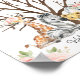 Dulce cartel de firmas de bebé con animales de safari con huellas dactilares, que incluye hermosos arreglos florales, cuatro adorables animales de la jungla en acuarela y un árbol marrón desnudo.