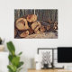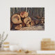 Un poster muestra una pila de madera en medio de un bosque.