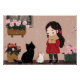 Este ilustracion digital captura el vínculo especial entre una joven y su querido gato.