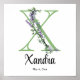 Póster de monograma X de lavanda y eucalipto para