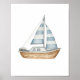 Barco o yate azul a la vela pintado con acuarela. Zarpa para diseñar el tema náutico más hermoso para tu bebé niño. Regalo ideal para baby shower, así que recuerda a todos que compren en la Colección su regalo ideal.