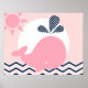 ¿Buscas un gran póster para la nursery? Si la decoración es náutica o de vida marina o ballenas, este póster de ballena rosa y azul marino es perfecto.