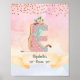 Una encantadora ilustración de una jirafa bebé durmiendo sobre una gran letra E. Fondo de acuarela con brillo dorado en la parte superior. Ideal para cualquier niño o persona que ame ilustraciones acogedoras y cuyo nombre comience con la letra E. Encuentra las otras letras en la colección.