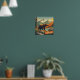 Osito de dibujos animados al estilo retro y cadena montañosa explora más vida silvestre