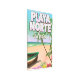 Afiche de viaje de Playa Norte, México con una playa mexicana y un bote de pesca.