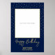 Agrega un detalle divertido a tu fiesta de cumpleaños. Este póster de propaganda fotográfica presenta un elegante texto "Feliz Cumpleaños" con letra personalizada. Este diseño será una combinación perfecta para una celebración de cumpleaños moderna en dorado y azul marino. Adjunta el póster a un tablero de espuma y recorta el área marcada en forma de cuadrado. Tus invitados disfrutarán de este marco de fotografía y recordarán tu día especial.