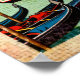 Sumérgete en el romanticismo de Venecia con esta ilustración de tarjeta postal retro al estilo de los años 40. “VENECIA” aparece en letras mayúsculas y negritas llenas de imágenes en miniatura de la Basílica de San Marcos, el Puente de Rialto y góndolas. El fondo muestra canales coloridos y edificios venecianos. Ideal para los amantes de la ciudad más encantadora de Italia.