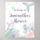 Póster/señal de ducha personalizable con acuarelas de océano pintadas a mano. Ver más productos de fiesta con temática de océano y bajo el mar en nuestra tienda a continuación. Este diseño cuenta con arte original de Melissa Rohr, copyright 2020. Todos los derechos reservados.