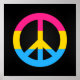 Poster con diseño de símbolo de paz en colores de pansexualidad bandera de orgullo; franjas rosa, amarillas y azules bandera de orgullo en fondo negro