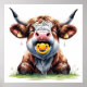 Póster de Vaca Bebé Highland Floral Rosado