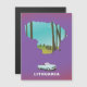 Póster de viaje con mapa de Lituania con un mapa de la nación y un precioso coche pequeño.