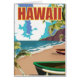 Poster hawaiana de viaje vintage de un viejo bote de pesca en una playa de arena.