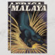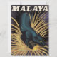 Afiche de viaje de vacaciones estilo puma de Malaya. Papel de viaje del gato grande de Malaya. Afiche de viaje del avión.