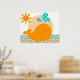 ¿Buscas un gran póster para el vivero? Si la decoración es náutica o vida marina o ballenas, este póster de ballenas naranja y azul es perfecto.