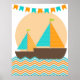 Póster de vivero náutico de naranja y azul turques