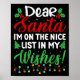 Póster Dear Santa I'm On Nice List In My Wishes Funny Chr