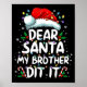 Dear Santa My Brother Did It Funny Christmas Boys Girls Kids