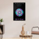 Mi cita favorita de todos los tiempos de Mahatma Gandhi. Sea el cambio. Sobre negro brillante con el hermoso morado y turquesa Independencia Mandala con un símbolo OM plateado y un yin-yang en el centro, conteniendo las 12 señales de los símbolos zodiaco y universal para la paz, la energía y el equilibrio.