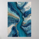 Rich navy and sapphire blues swirl into turquoise and aquamarine layers, accented by bubbling white foam, creamy alabaster edges, and delicate threads of shimmering metallic gold and copper. The glossy, high-contrast texture creates dramatic depth and fluid motion—evoking frozen ocean waves, underwater light shafts, polished geode stone, or elemental luxury captured in resin. Perfect for modern bedrooms, living rooms, home offices, spas, meditation spaces, coastal-themed bathrooms, or as sophisticated gifts for anyone drawn to calming yet opulent abstracts, wellness aesthetics, metallic shimmer, or high-end contemporary decor.