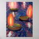 Pintura de profundidades iluminadas flotando y reflexionando sobre el agua.