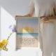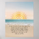 El hermoso arte mural inspirador tiene un solárium dorado sobre un fondo de arena oceánica, mar y cielo, con la definición de Namaste "escrito" en la arena.