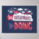 Cuidada cita colorida de "Stop Dreaming Start Doing" con arcos de lluvia, estrellas y cabeza de unicornio.