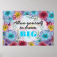 Traiga una ráfaga de inspiración a sus paredes con este impresionante poster de personalizable que audazmente proclama: "Déjate soñar GRANDES". Con flores de colores vivos, cada flor es muy detallada y te invita a explorar las profundidades de tu imaginación. El mensaje motivacional está elegantemente escrito, con la palabra "GRAN" enfatizada para recordarte el ilimitado potencial de tus sueños. Perfecto para personalizar cualquier espacio, este poster no es sólo una decoración, sino una afirmación diaria de apuntar alto y soñar sin límites. Ideal para soñadores y hacedores por igual, dejar que esta pieza despierte creatividad y ambición a toda mirada.