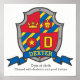 Escudo estilo caballeros con monograma D, cartel de nombre de arte perfecto para el dormitorio o sala de juegos de un niño en tonos rojos, amarillos, azules y grises. Personalice con el nombre de su hijo y el significado del nombre para un toque verdaderamente personalizado en el dormitorio o guardería de su hijo, este ejemplo es para el nombre Dexter Dyer de tela. Bendecido con destreza y buena suerte. Impresión de cartel ideal como regalo para un nuevo bebé, para un bautizo, nombre de bebé o regalo para baby shower. Dibujo de escudo único, arte gráfico y diseño de Sarah Trett. www.sarahtrett.com para www.mylittleeden.com